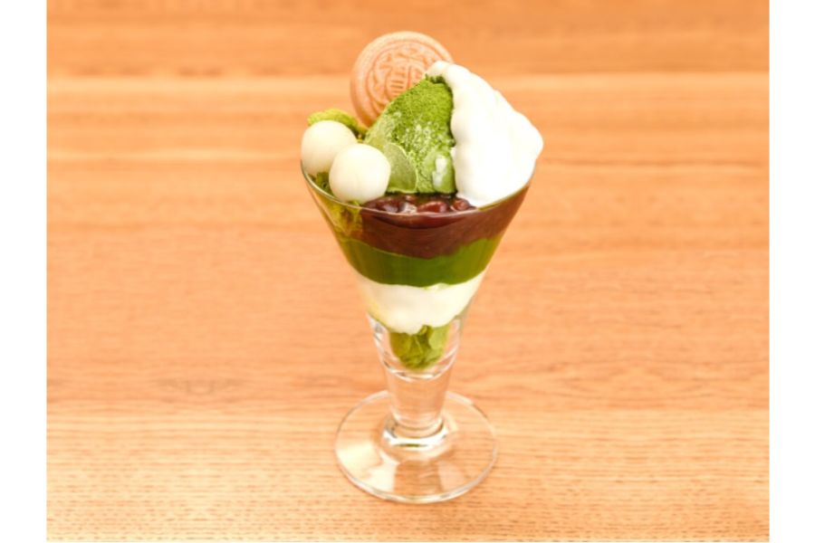 京町家を改装した「京都祇園カフェ あのん本店」 では、カフェ限定でいただける「あのんパフェ」1,320円をぜひ。十勝産のふっくらした小豆、宇治抹茶を使用した抹茶ジュレ、そしてマスカルポーネとクリームチーズを使用した濃厚ソフトクリームが三位一体となった贅沢なパフェです。「あのん」の看板商品「あんぽーね」の進化版ともいえる一品を楽しんで。