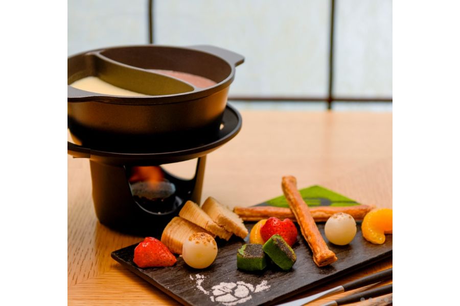 また、季節限定(2022年4月まで提供)の「あんふぉんでゅ」1,320円は十勝産こしあんソース、西京味噌と合わせた白あんソースという2種のソースにつけて食べるフォンデュもおすすめ。ソースの隠し味として使われている、マスカルポーネがコクとなっています。