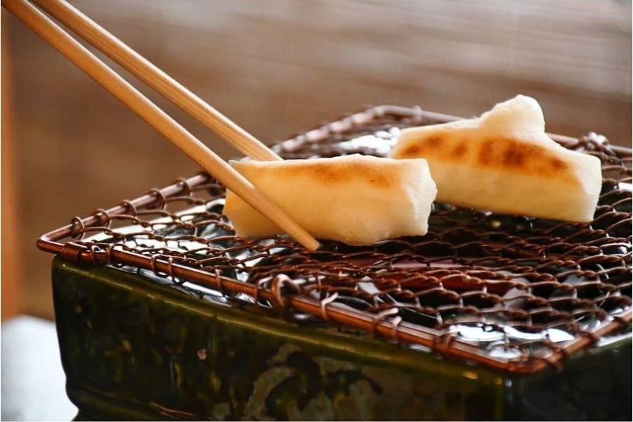 またあんこやお餅好きな人におすすめなのが「もちやきぜんざい」1,050円。席に運ばれる専用コンロによって自分でお餅を焼くため、好みの焼き目をつけられるのも人気なんです。自分で焼いたお餅を、大粒の丹波産大納言小豆をじっくりと炊き上げたぜんざいでいただきます。温かいぜんざいでほっこりとした時間を過ごせますよ。