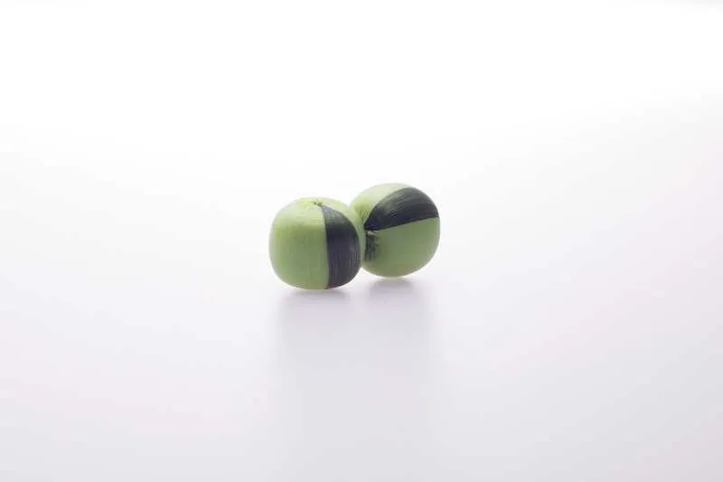 挽き立ての新鮮な抹茶を使用した「薄茶飴」は、滑らかな口当たりで奥ゆかしい風味が広がる。二色の緑は茶碗の中できめ細かく点てられた泡と、その下に沈む抹茶を表現。程よい苦みが心地よく、甘いものが苦手な方にもおすすめ。雨が溶けきる最後まで、お薄茶のおいしさを楽しめる。