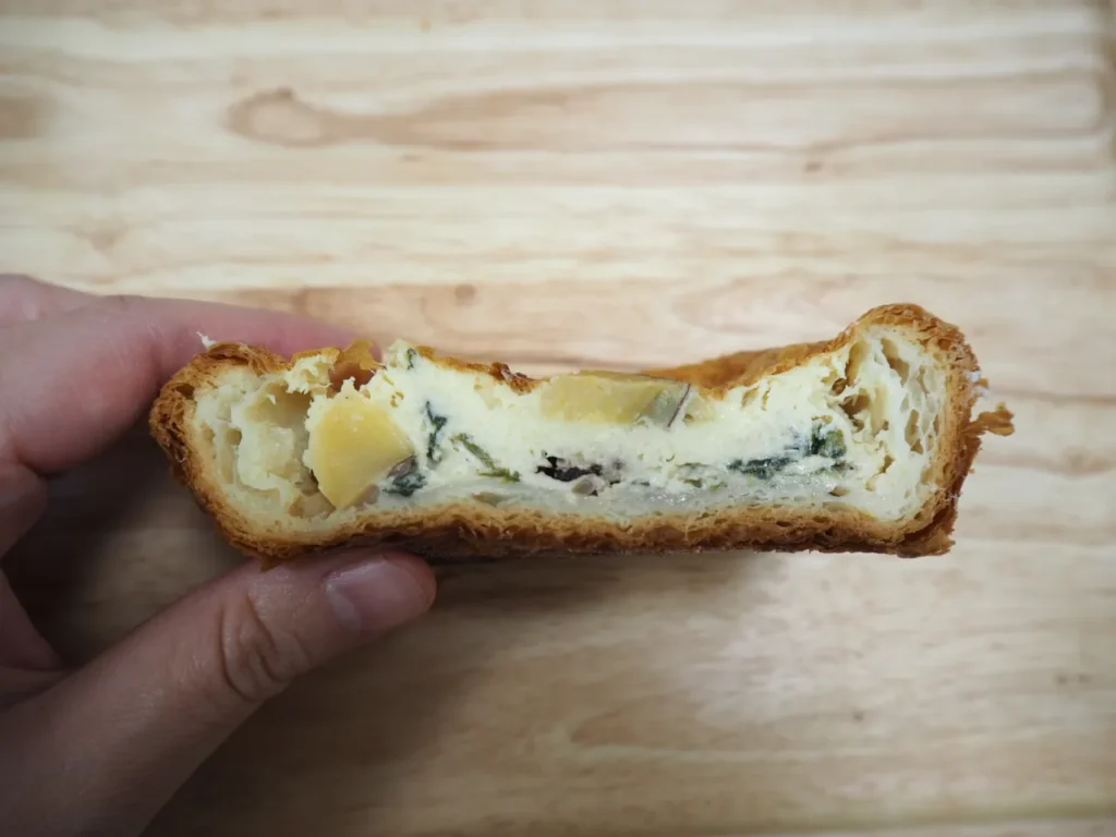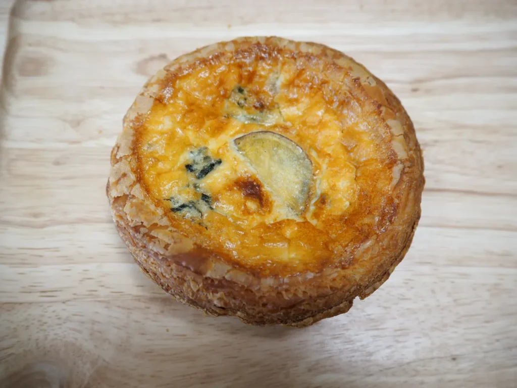 特徴: しいたけ、舞茸、春菊、さつまいも、丹波栗、リュグイエールチーズ、パルミジャーノ、ブルーチーズが入ったキッシュです。こちらがイチオシです。