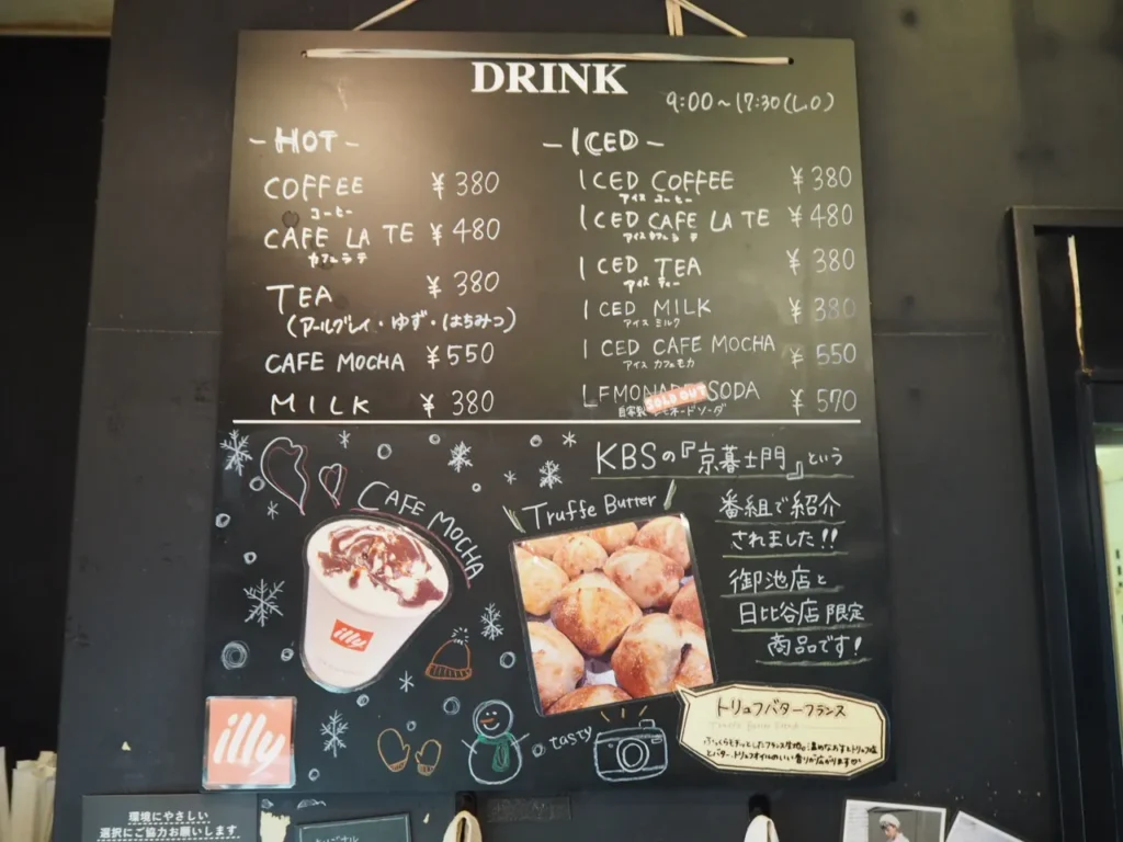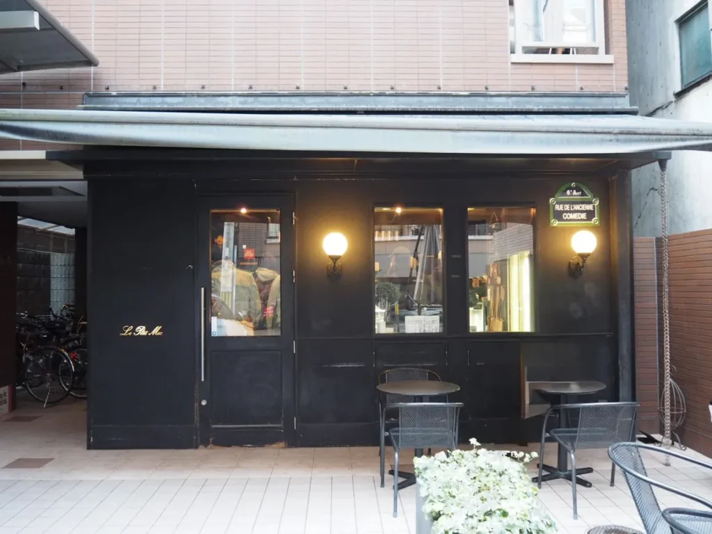 ル・プチメック(Le Petit Mec)御池店へのアクセスは、京都市営地下鉄烏丸御池駅から徒歩4分です。京都市営地下鉄烏丸御池駅の2番出口を上がって、烏丸通を渡るのと反対側、右手にハローワークの建物を見ながら御池通を西に進みます。3本目の衣棚通を右折したら、左手にお店が見えてきます。少し奥まってるので通り過ぎないよう気をつけてくださいね。店前にはイートイン用のテーブルとイスが並んでいます。