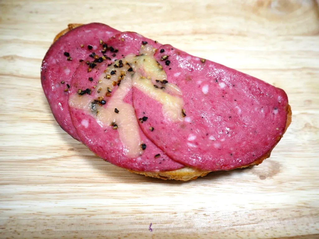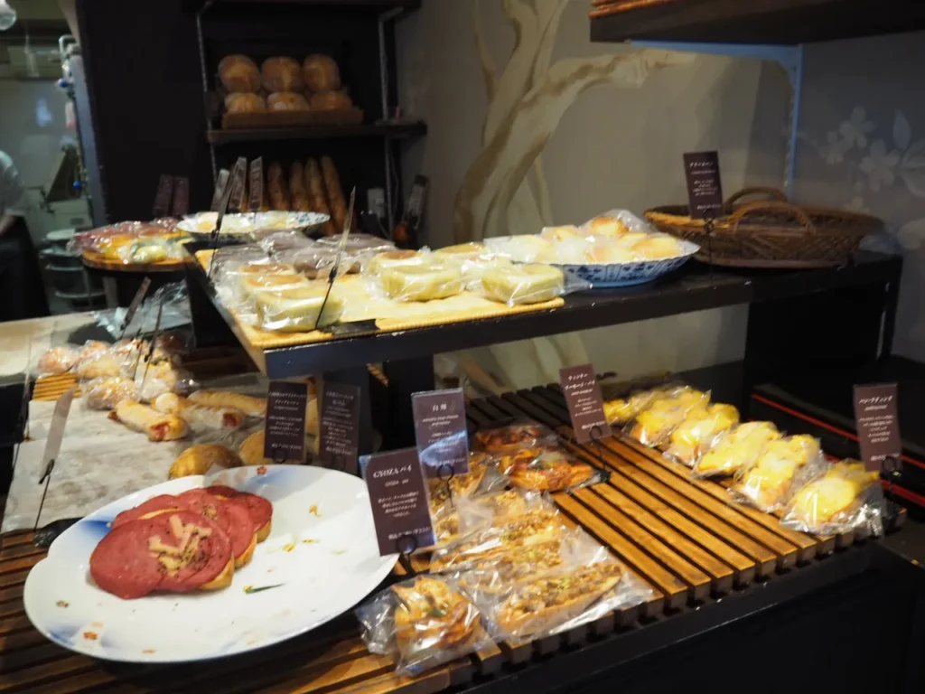 特徴: ハード目の生地にハムを乗せた、白味噌よりも黒こしょうの印象が強いパンです。