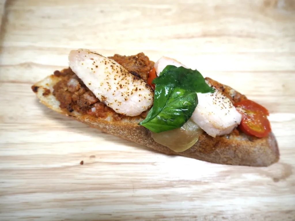 特徴: トマトのミートソースにチキンがゴロっと乗った食べ応えのある一品です。