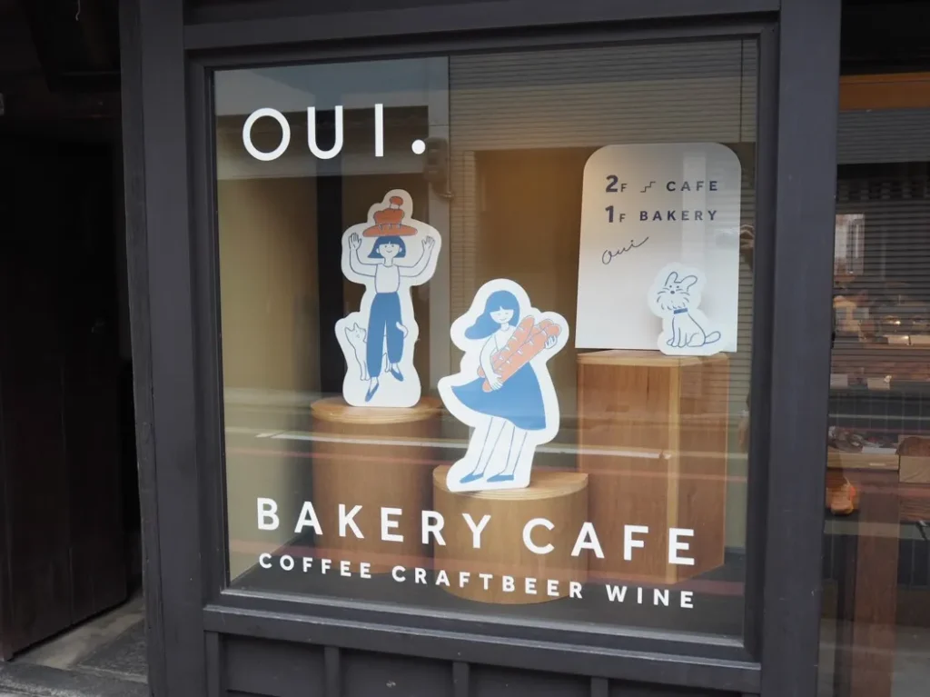 ウイ(OUI.)は京都・烏丸の町家を改装したオシャレなベーカリー。1階のベーカリーの他、2階がカフェになっていてイートインでも楽しめます。オリジナルキャラクターのデザインがかわいく、グッズも店頭で販売されていますのでチェックしてみてください。