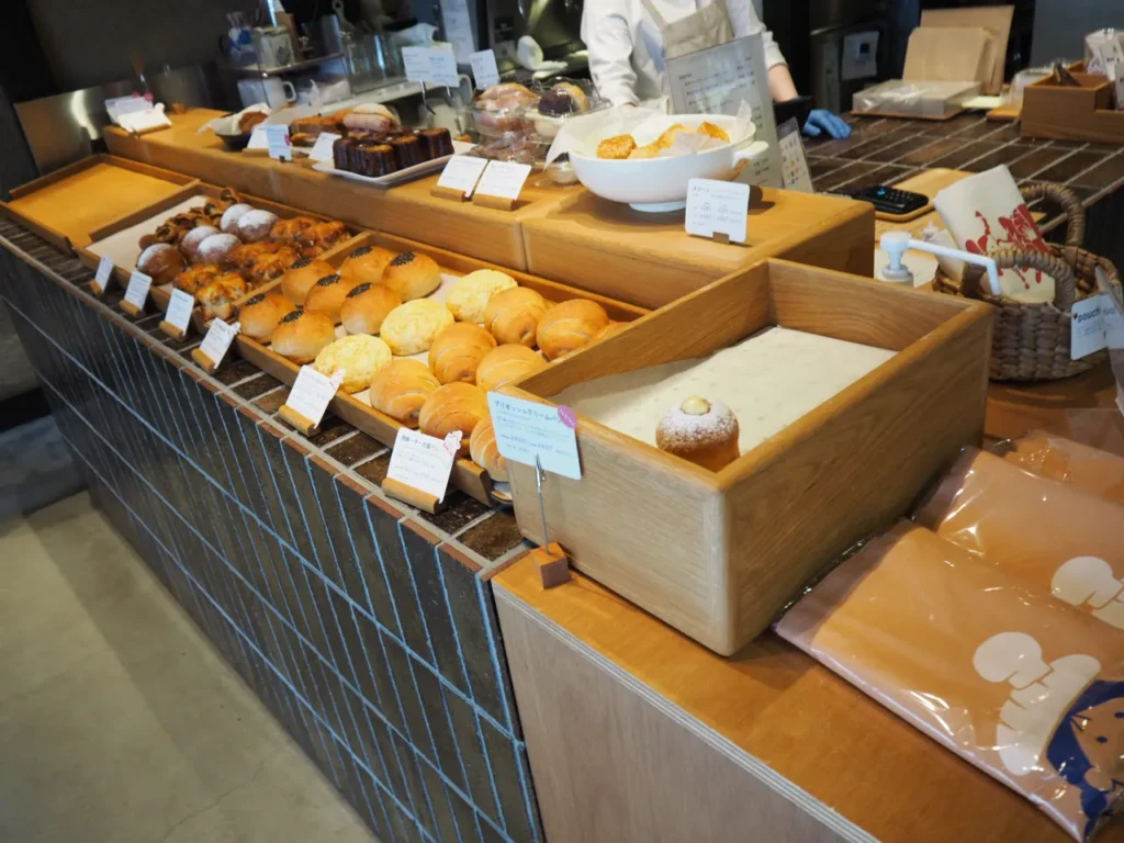 バゲットから食パン、クロワッサンにサンド、焼き菓子まで、スタイリッシュな店内には幅広い商品が並べられています。価300円~500円台が中心で、今回の購入分の平均価格は490円ほどでした。少しお高い印象ですが、京都の街を散策しながら歩き疲れた頃にオシャレな空間でパンとコーヒーを楽しむには最適だと思います。