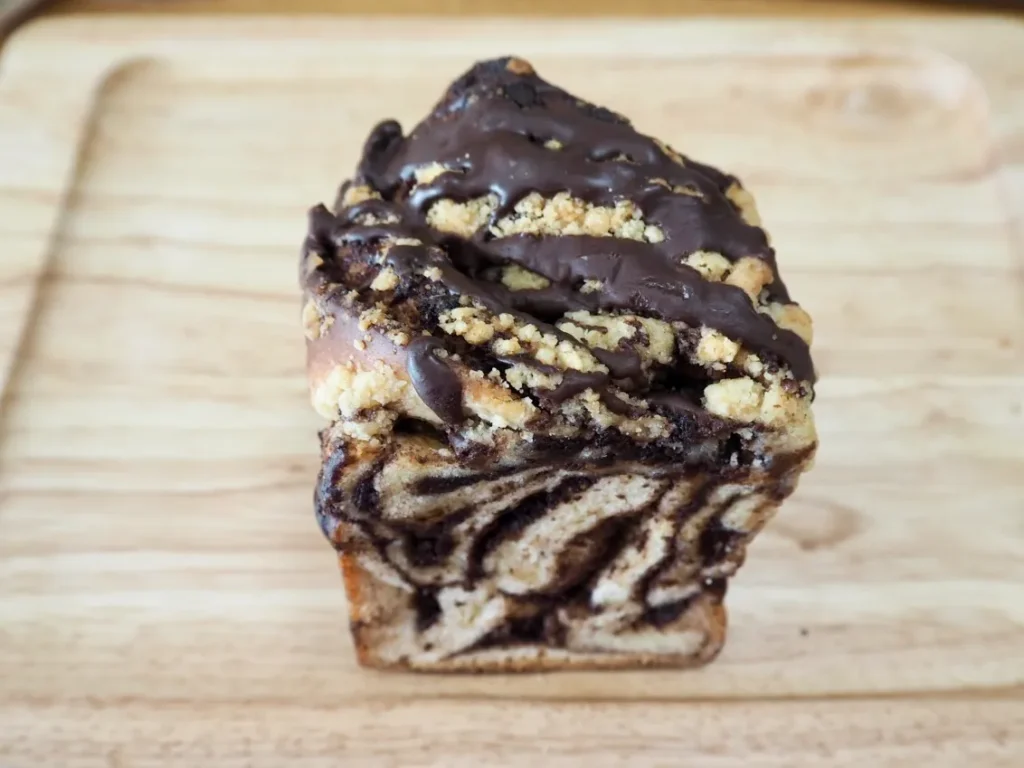 特徴: バブカとはニューヨーク発祥のパンで、チョコクリームとチョコチップに、シェトロイゼルとチョコレートで仕上げられたスイーツ感覚で楽しめる食べ応えあふれるパンです。こちらがデブ熊のイチオシ。