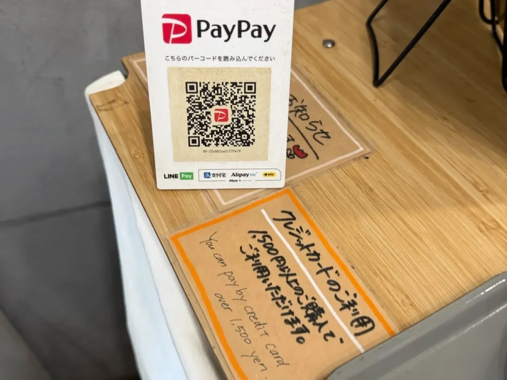 スロウ(Slō)のお支払い方法は、現金、クレジット(1,500円以上の購入で利用可)、QRコード(PayPay)に対応しています。
