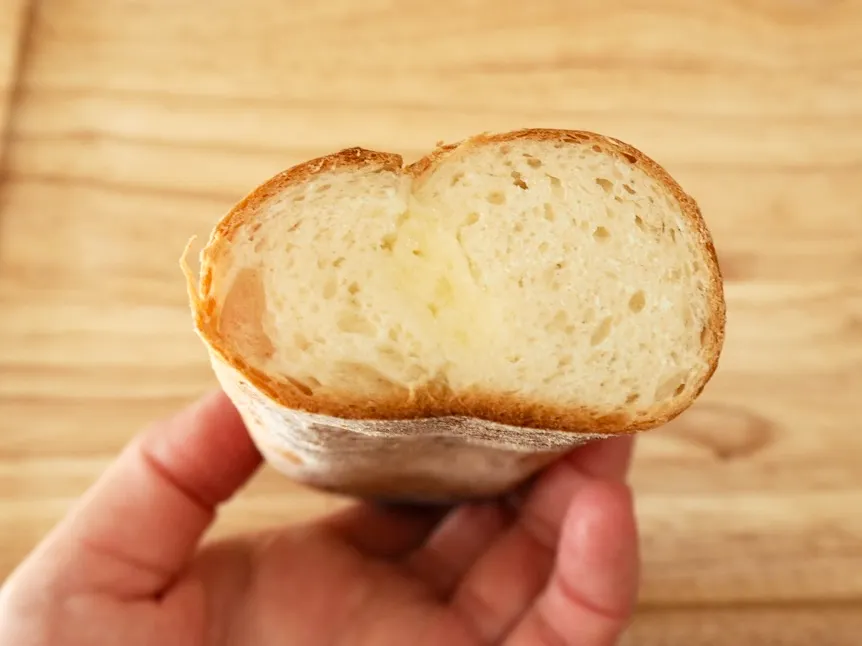 特徴: 外はサクッと中はフワっと。巻き込んだバターと上に溶かしたバターの風味が良く、上にまぶした岩塩がアクセントになっています。シンプルなパンほど生地のおいしさが楽しめますね。