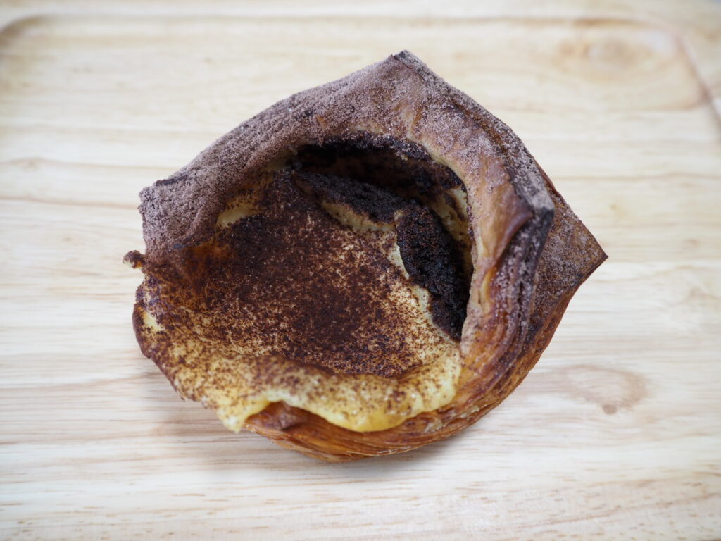特徴: コーヒーパウダーのほろにがさが引き立った、硬めのティラミスのようなパンです。