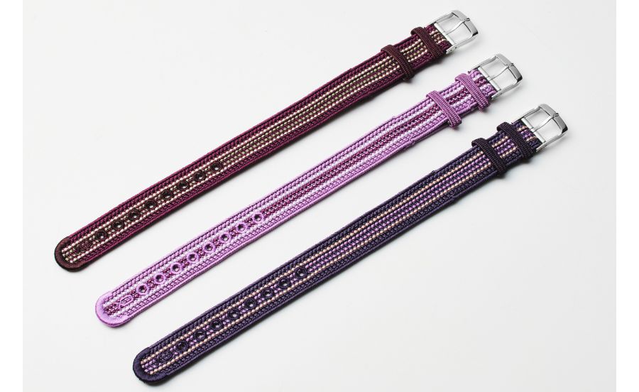 Knotの定番ラインナップでも人気の高い綾高麗(あやこうらい)という組み方のストラップで、京都に古くから伝わる京紫を意識した「紫檀(シタン)」「葵(アオイ)」「深紫(コキ)」という鮮やかな3色展開となっている。