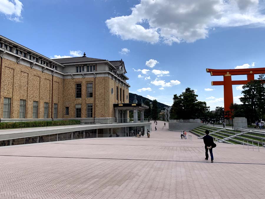 建物から少し離れた場所から写真を撮ると平安神宮の大鳥居も入って、岡崎らしい一枚をカメラにおさめることができます。