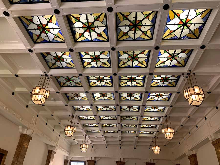 天井いっぱいにはめ込まれたステンドグラスもきれいですね。