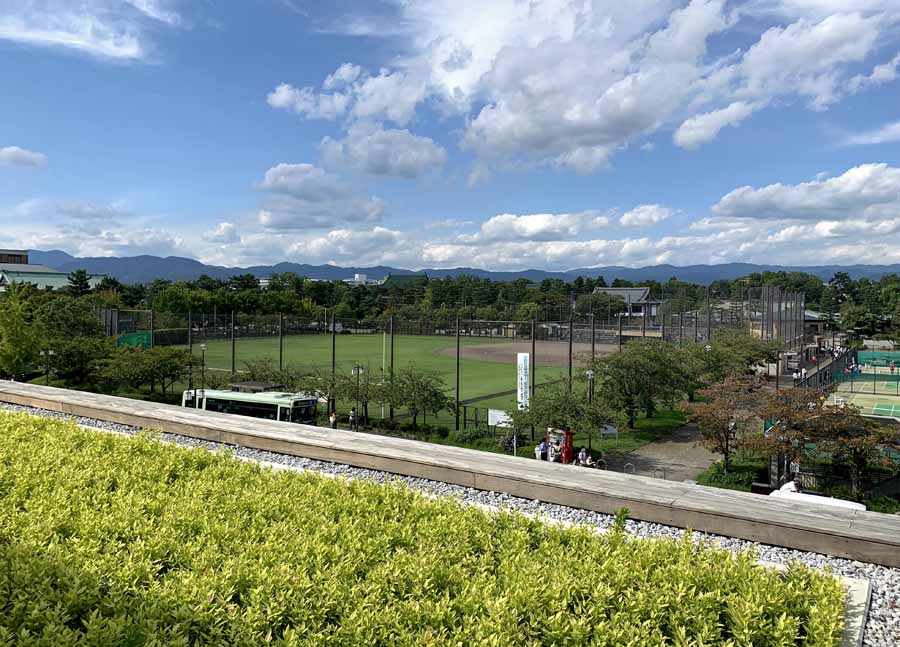 京セラ美術館から平安神宮方面を望んだ風景です。今回のリニューアルで初めて屋上にも上がれるようになりました。