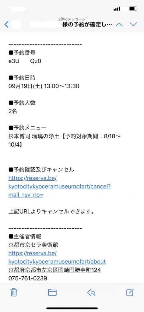 ④予約を完了したら、次のような確認メールがスマートフォンに届きますので、当日まで保存しておきましょう。