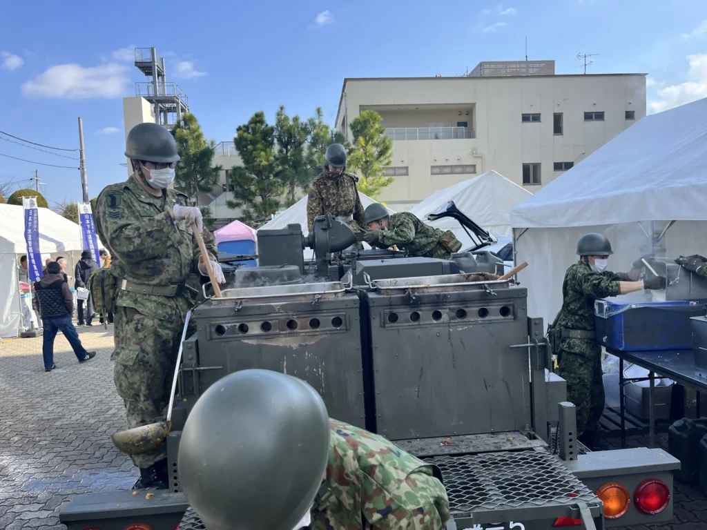 市民ひろばでは、自衛隊の炊き出しを間近で見ることも。