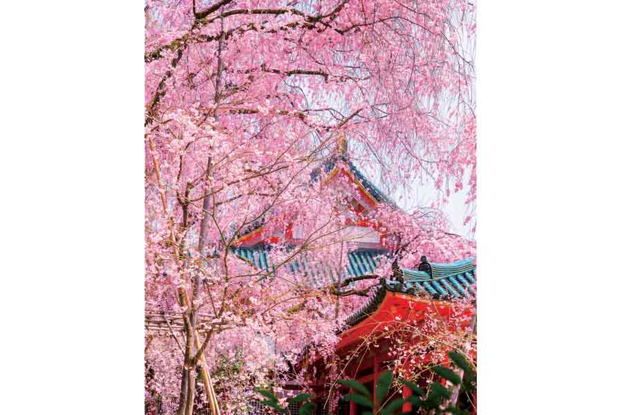 春を映した和菓子をいただいた後は、約300本の桜が競演する平安神宮の境内にうっとり…。