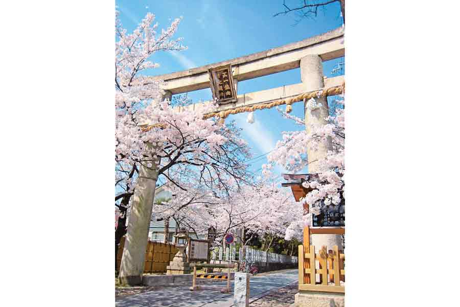 少し足を延ばして行きたいのが、西向日にある向日神社。約200メートルの参道が桜で覆われる光景は圧巻です。