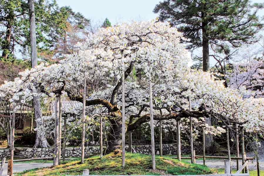 花の寺・勝持寺では、約100本の桜がのびのびと枝を広げます。見ている方も開放的な気分に。