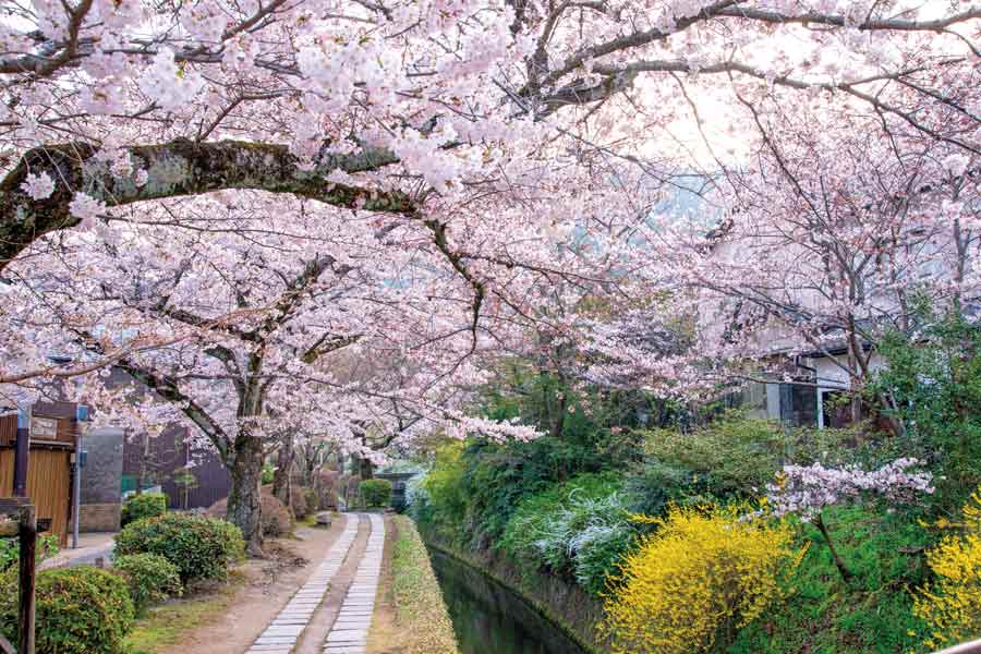 哲学の道は、どこまで行っても桜、桜、桜…。道中に点在する神社仏閣への寄り道も楽しくて、時間を忘れてしまいそう。