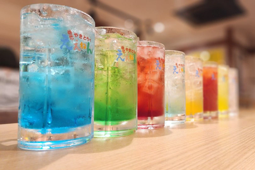 「ええねん」では、国産の新鮮な鶏肉を店舗で1本1本串打ちした「自慢のもも焼」をはじめとし、こってり味噌味がしみしみの名物「どて煮込み」、7種の味が楽しめるとり天串(1本から注文可)など、多種多様なメニューが用意されています。