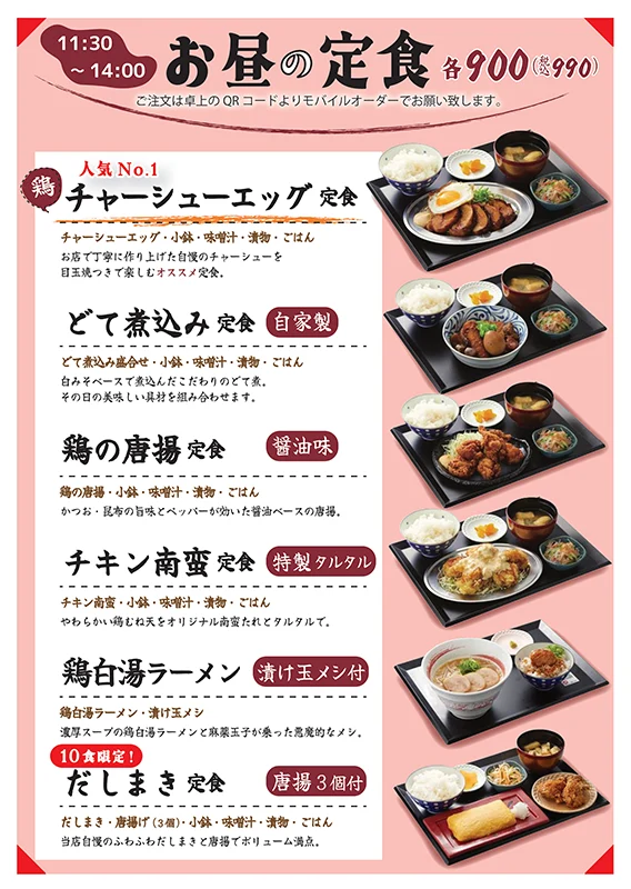 また、7月1日(火)からは、平日(11:30~14:00)にランチ営業もあります。6種の定食メニューが各990円で楽しめます。
