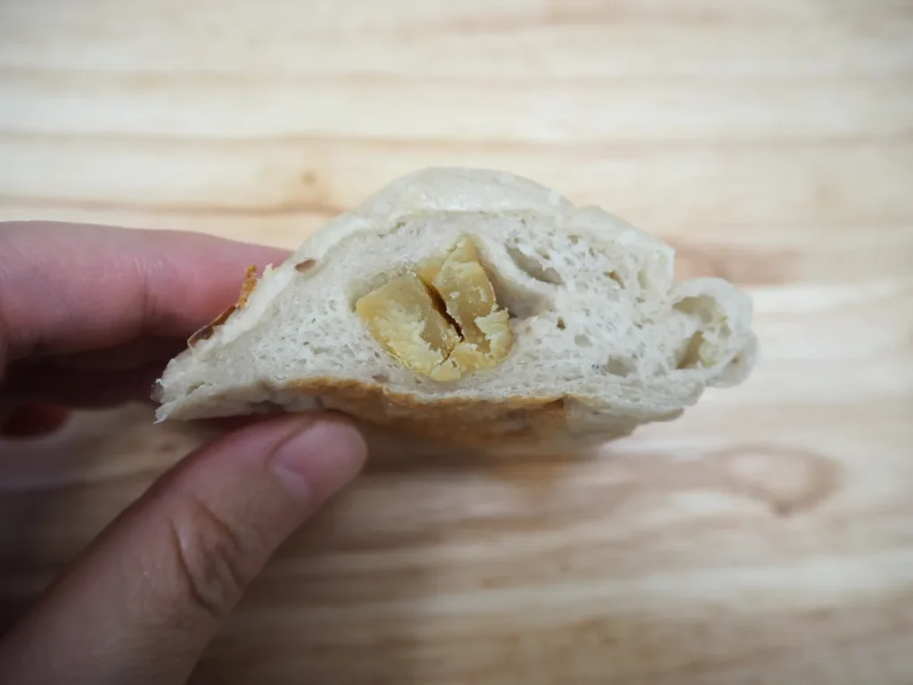 特徴: もちもちの生地にイタリア産の焼き栗を混ぜ焼いたパンです。