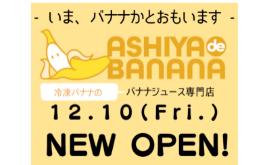 冷凍バナナで作るバナナジュース専門店「ASHIYA de BANANA」が、12月10日(金)、芦屋にオープンした。
