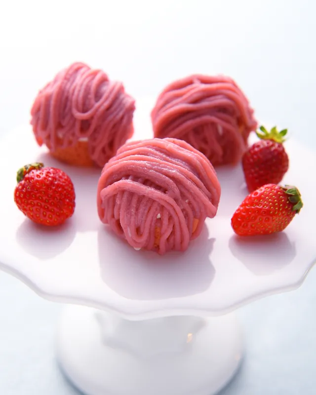 特に、思わず「可愛い!」と声をあげてしまいそうな「和風いちごモンブラン」は、写真映え間違いなし。白あんのベースにピンク色の繊細なクリームが目の前で絞り出されていきます。このときめく瞬間はきっと動画に撮りたくなるはず♪