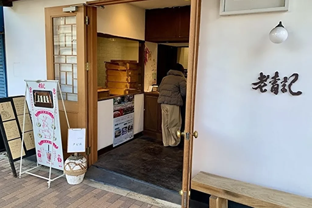 切り文字看板がステキな「老青記」は、肉包焼売(ロウパオシウマイ)専門店のよう。「国家一級点心師が作る最高の点心」ですって!餡には牛、羊、豚、鶏と4種類。タピオカミルクティーもあるんですね。