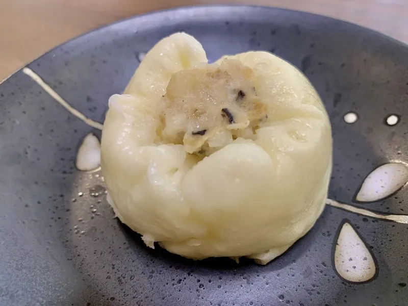どれにしようか迷ったのですが、「豚肉餡」(1個160円)と、「大根餅」(1個200円)をテイクアウトすることに。「大根餅」は、「一度食べた人は必ず頼む!」とメニューに書いてあったので、迷わずオーダーしました。せいろから取り出されたばかりで熱々です。