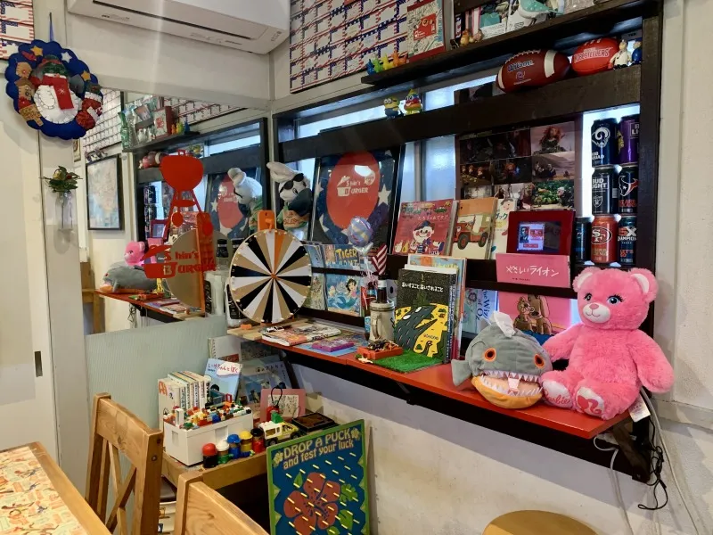 店内には2人がけテーブル席が3卓、4人掛けテーブル席が1卓あります。色鮮やかな雑貨たちが並べられたアメリカン調の店内に、ワクワク感が上昇します♪