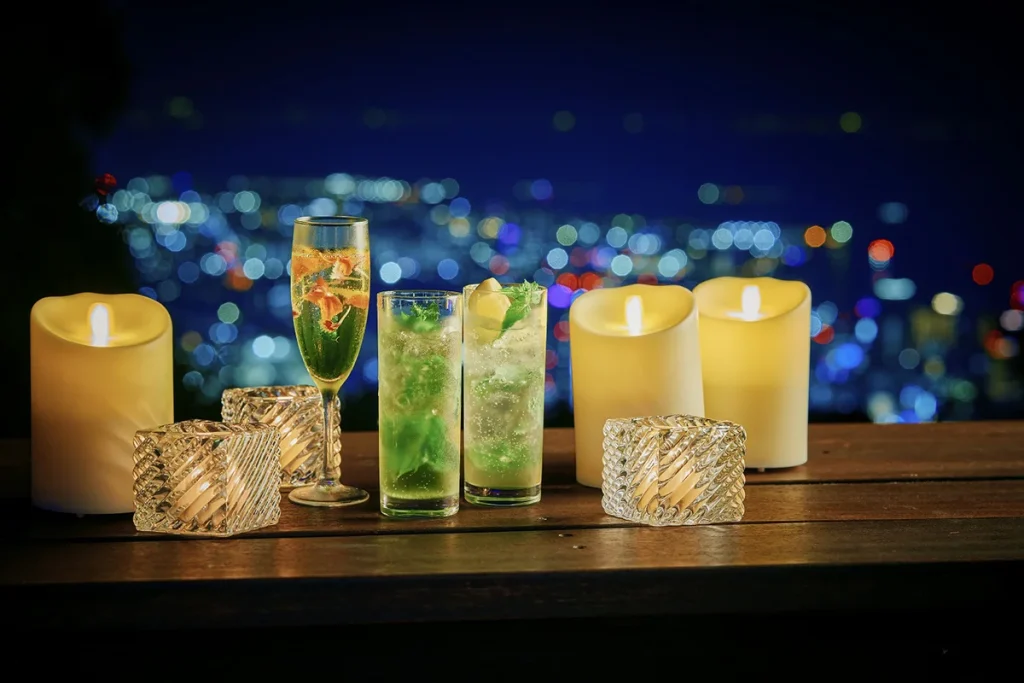 この時期は、毎日ナイター営業が実施されているので、パラソルテーブルやバーカウンターなどで、都会からすぐの自然の中、ゆっくりと景色を楽しむことができます。名物ドリンクの「布引モヒート」とともに、幻想的な夜を楽しんではいかがでしょうか。