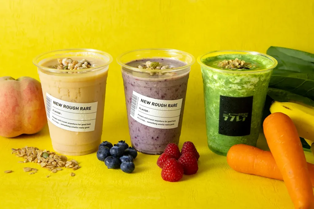 気軽にひんやりできる、ヘルシーなスムージーも同時に販売されます。「アサイー」「グリーングロウ」「ピーチソイス」と、こちらも3種。