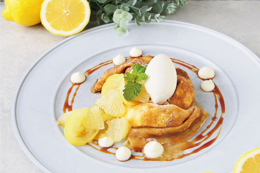 レモンの花から採れた”はちみつ”とレアチーズクリームをあわせた夏のクレープ。自家製はちみつレモンとグレープフルーツと一緒に味わって。