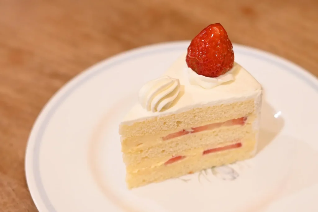 「いちごのショートケーキ」(600円)は、ふんわりとしたスポンジ生地に、カスタードを混ぜた生クリームをサンド。フルーツブランデー「キルシュ」の風味がほんのりと感じられる。