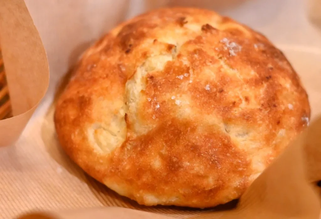 蒸して粗くつぶしたジャガイモを生地に練り込んで焼いたパン。ジャガイモの塩気がアクセントになり、ハッシュドポテトのような風味だ。「あまりこねずに、ふわっとまとめて焼いています。シンプルなんですよ」とシェフ。