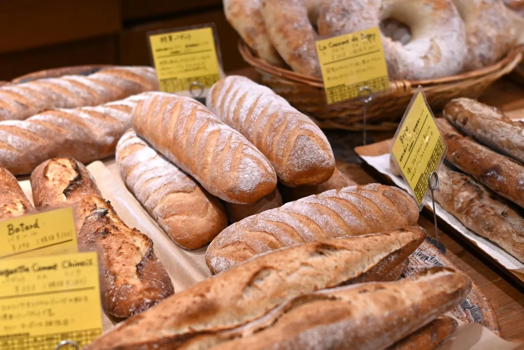 焼くとカリッとした食感の「フラットチャバタ」(260円)、福岡県のこだわり農家が作る全粒粉100%のドイツ風「シェフ好みなパン・コンプレ」(600円)、「北海道産石臼挽き小麦のバゲット」(350円)はどれも、噛(か)めば噛むほど小麦の風味とうまみを存分に感じられる。