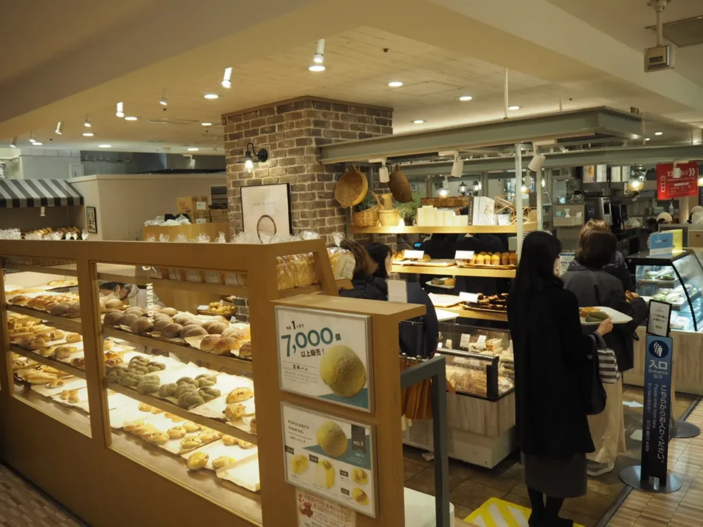ハウネベーヤ(HAVNE BAGER)さんちか店は、神戸三宮の地下街「さんちか」に入った人気ベーカリーカフェ。平日休日を問わず、多くのお客さんで大人気。焼きたてのパンがどんどん補充されていきます。こちらのお店で使用される粗糖は、上白糖などに生成する前の原料糖で、アクやくせがなく豊かなミネラルと上品な甘さ・風味が特徴です。併設のカフェをご利用の際は1ドリンク制になります。多くの支店を持つベーカリー・カスカードと同じ会社が経営していて、ハウネベーヤとしては門戸厄神駅にも支店があります。