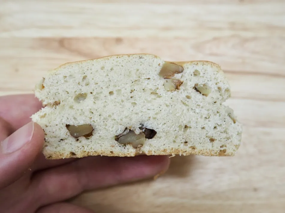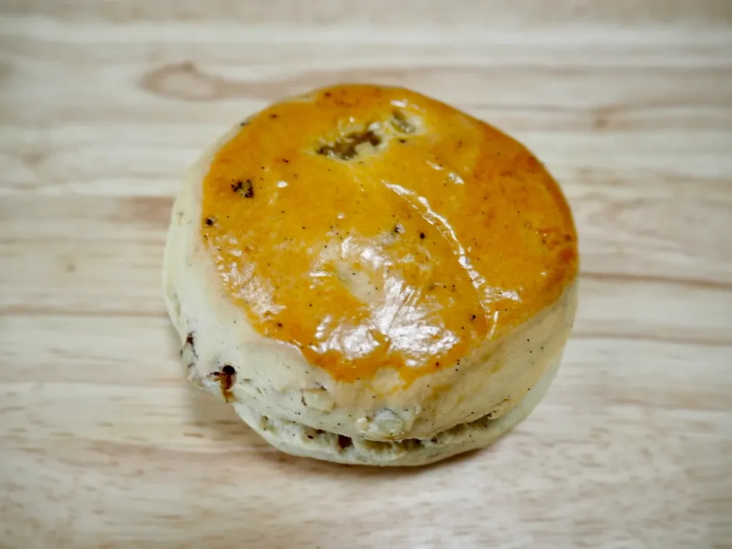 特徴: ブルターニュの高級海塩下ランドを使用した、くるみとバニラビーンズたっぷりのスコーン。紅茶と一緒に楽しみたいですね。