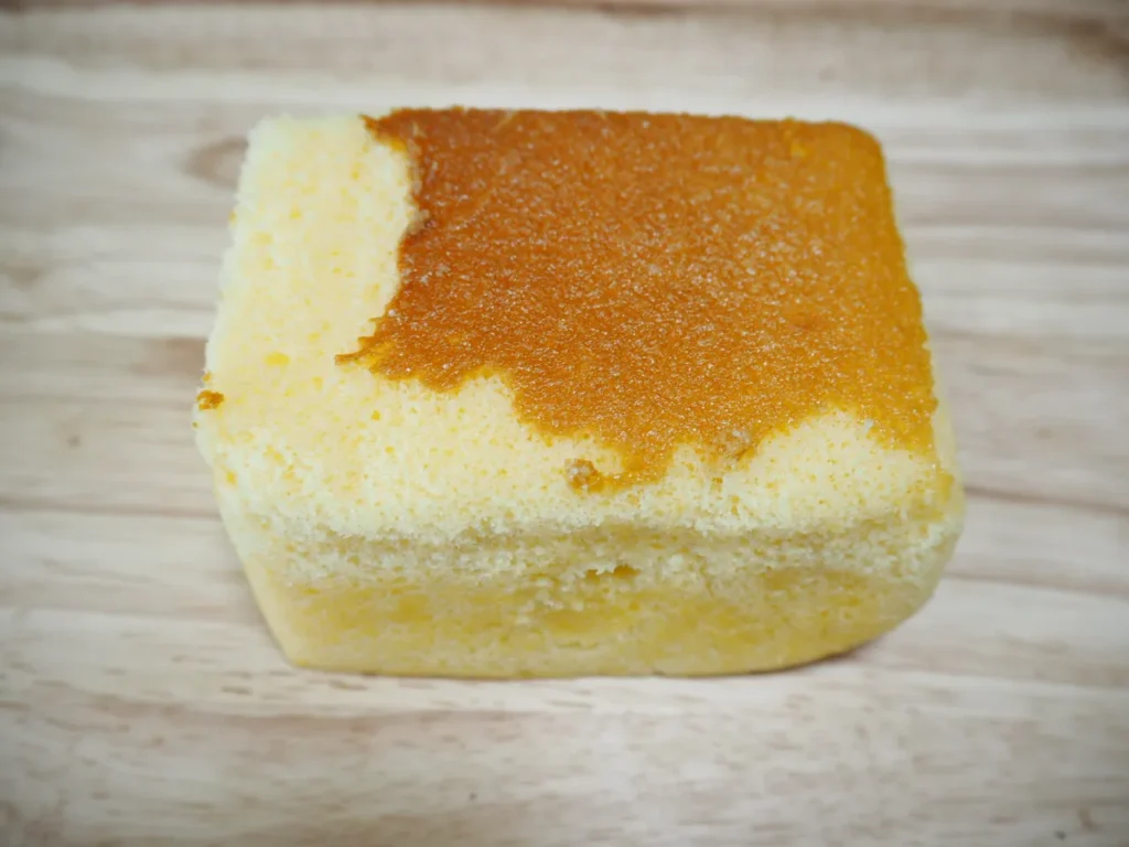 特徴: 北海道小麦とはちみつを使用した、ふわふわでくちどけの良い、ケーキのようなカステラです。