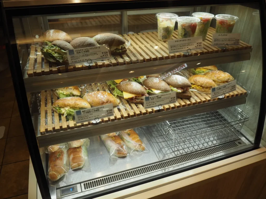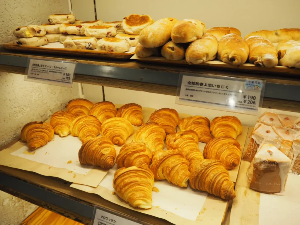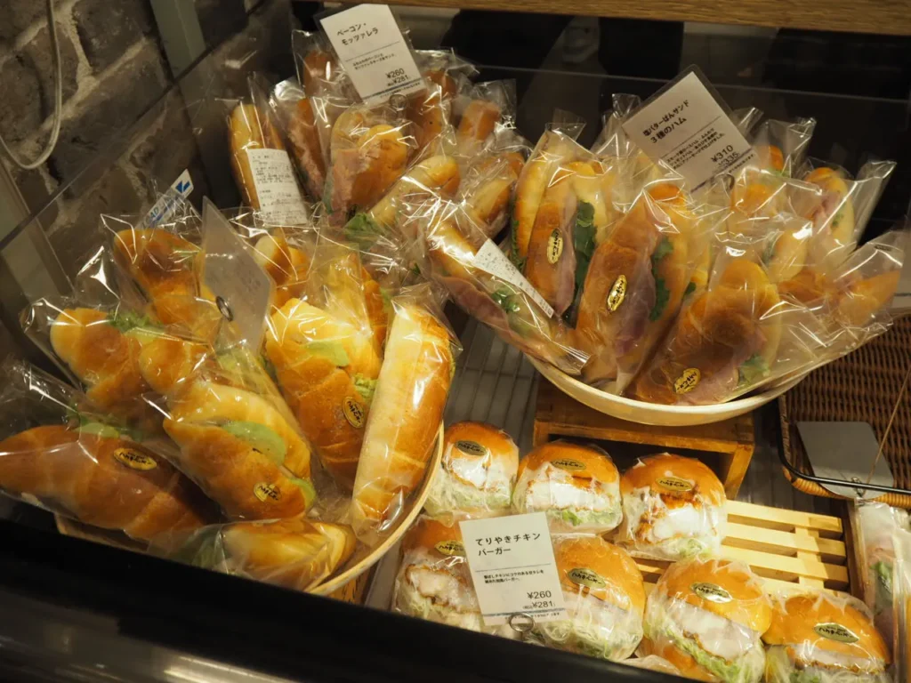 ハウネベーヤ(HAVNE BAGER)さんちか店のラインナップは、定番のクロワッサンなどハード系を中心に、焼きたてのパンが所狭しと店内に並んでいます。価格帯は100円~300円台が中心で、今回の購入分の平均価格は250円ほどでした。かなりリーズナブルですね。併設のカフェでコーヒーと一緒に楽しみたいです。
