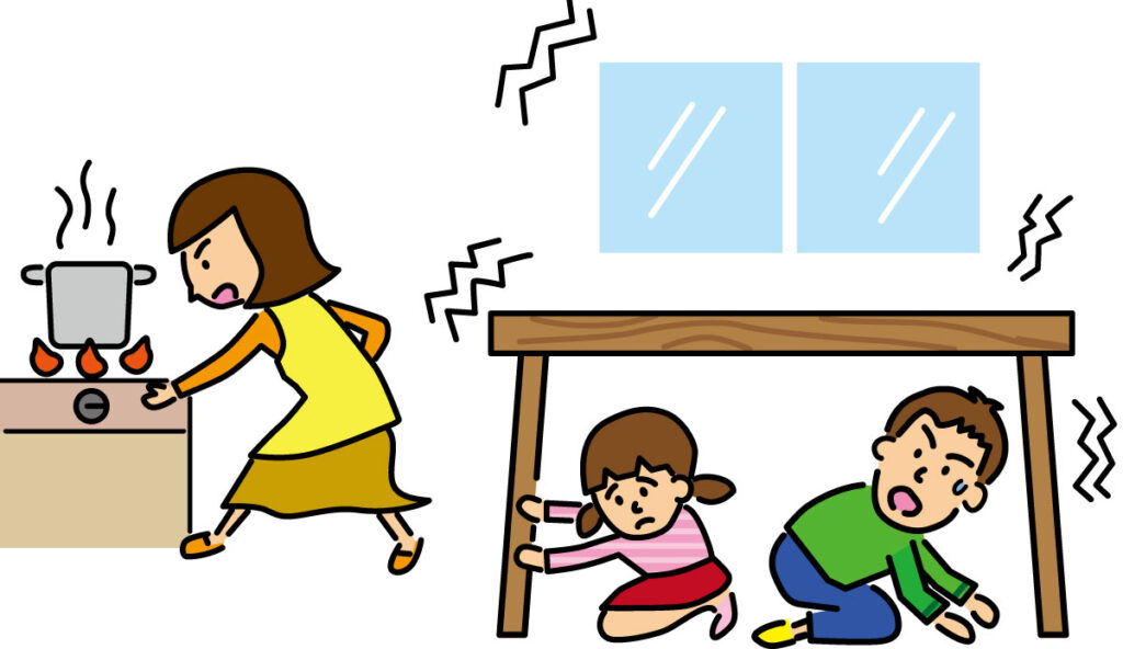 水害の危険があるときは早めに避難所へ行くことが原則。2階へ避難し水害を逃れるのは最終手段と考え、早めの避難を。地震が起きた際は机やベッドの下などで、落下物から身を守ることを最優先に。