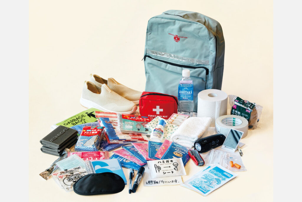 災害時に必要となる最低限のものを備え、すぐに取り出せるようにしておくのが1次の備え。被災したその時、安全な場所へ逃げる際にこれだけは持っていきたい。必要なものは女性、高齢者、子どもなど、個々人ごとに異なるものもあり、災害時は入手しにくくなるので自分に必要なものを普段からそろえておこう。