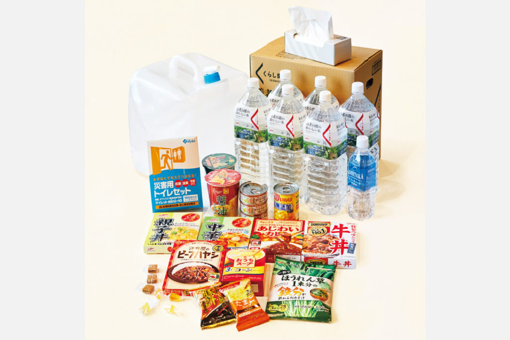 飲料水や食品など、ライフラインが途絶え、助けの手が届かなかったとしても自給自足できる備蓄品が2次の備え。7日間分を目安に備えておきたい。食品は防災食だけでそろえずに、家族の好みなどをベースに長期間保存できる野菜や缶詰、乾物などを多めに買いローリングストックしていくのがおすすめ。