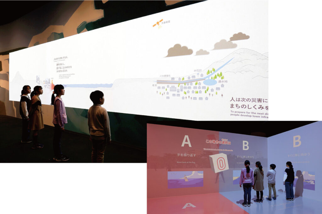 自然現象と人々の生活が交わることで自然災害が発生するということを学べるスペース。