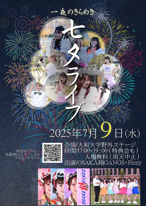 野外ステージでは9日午後5時から、アイドルユニット「Fizzy」と大阪発ユニット「OSAKA翔GANGS」(略して「翔ギャン」)が出演、特典会(有料撮影会など)も。