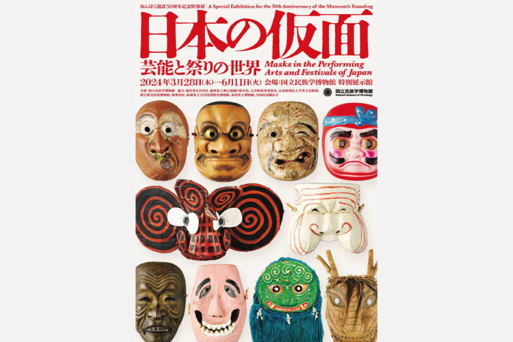 吹田市にある国立民族学博物館で、仮面の多様性を辿(たど)るみんぱく創設50周年記念特別展「日本の仮面――芸能と祭りの世界」が2024年3月28日(木)から6月11日(火)まで開催される。