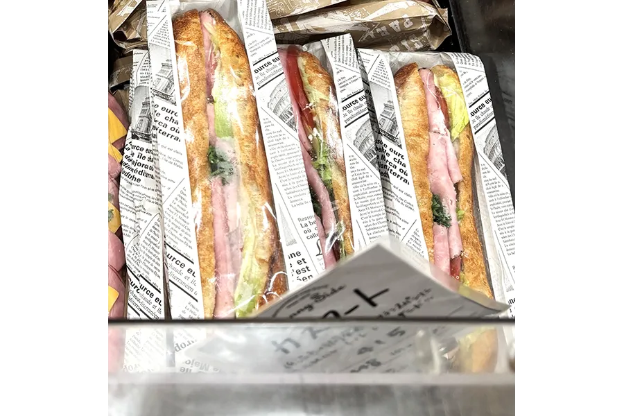 サンドされた具材は、ハム、トマト、レタスととてもシンプル。だからこそ、フランスパンの生地の香ばしさがより際立って、とても美味しくいただける。ソースなども、さっぱりした味わいなので、「ガツンと濃厚!旨味強い」カレーパンなどとあわせて食べるとバランスが良く、美味しくいただけるのでオススメだ。
