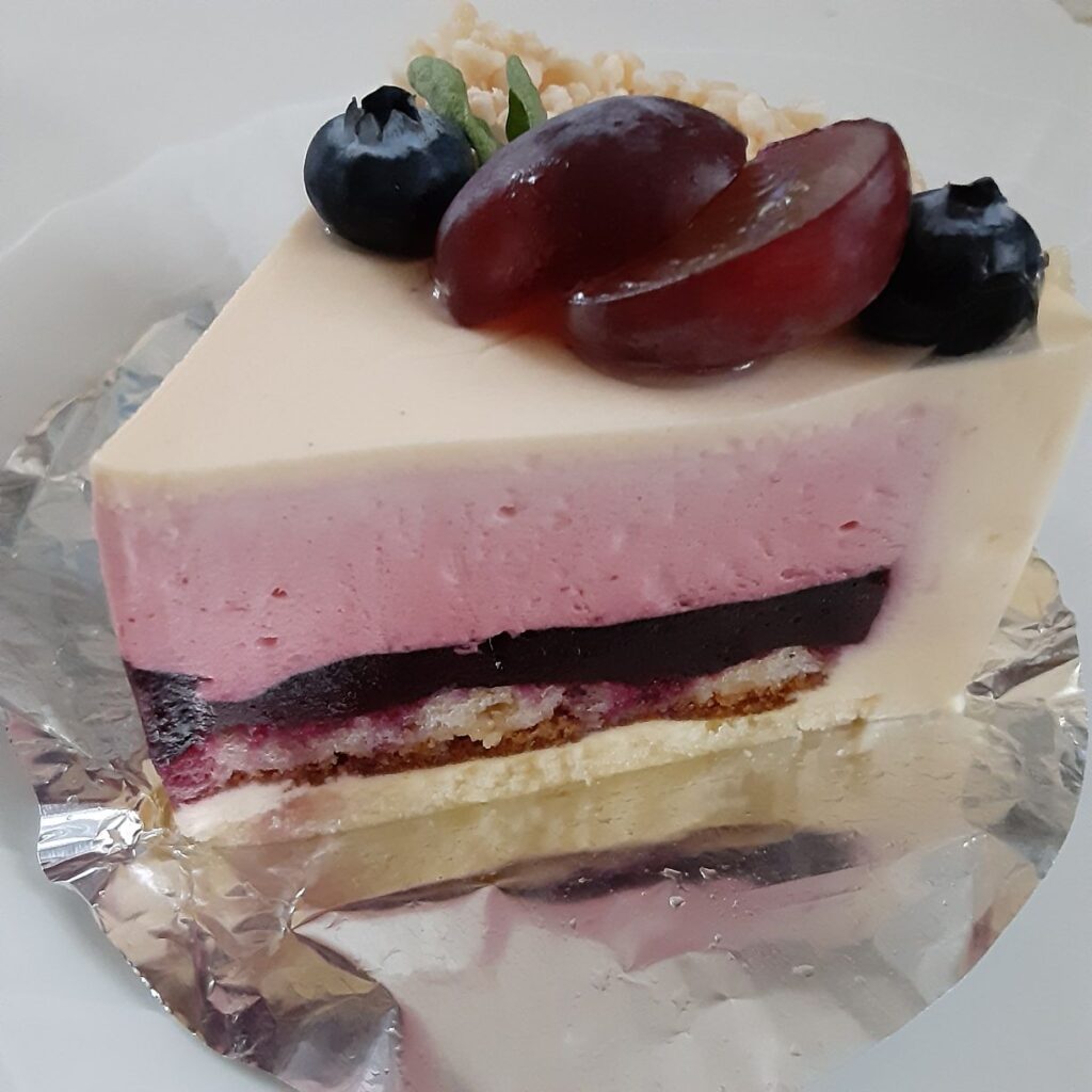 「マジャンタ」490円は、ベリーのジュレとフランボワーズのムースの酸味がアクセントのバニラのムース。